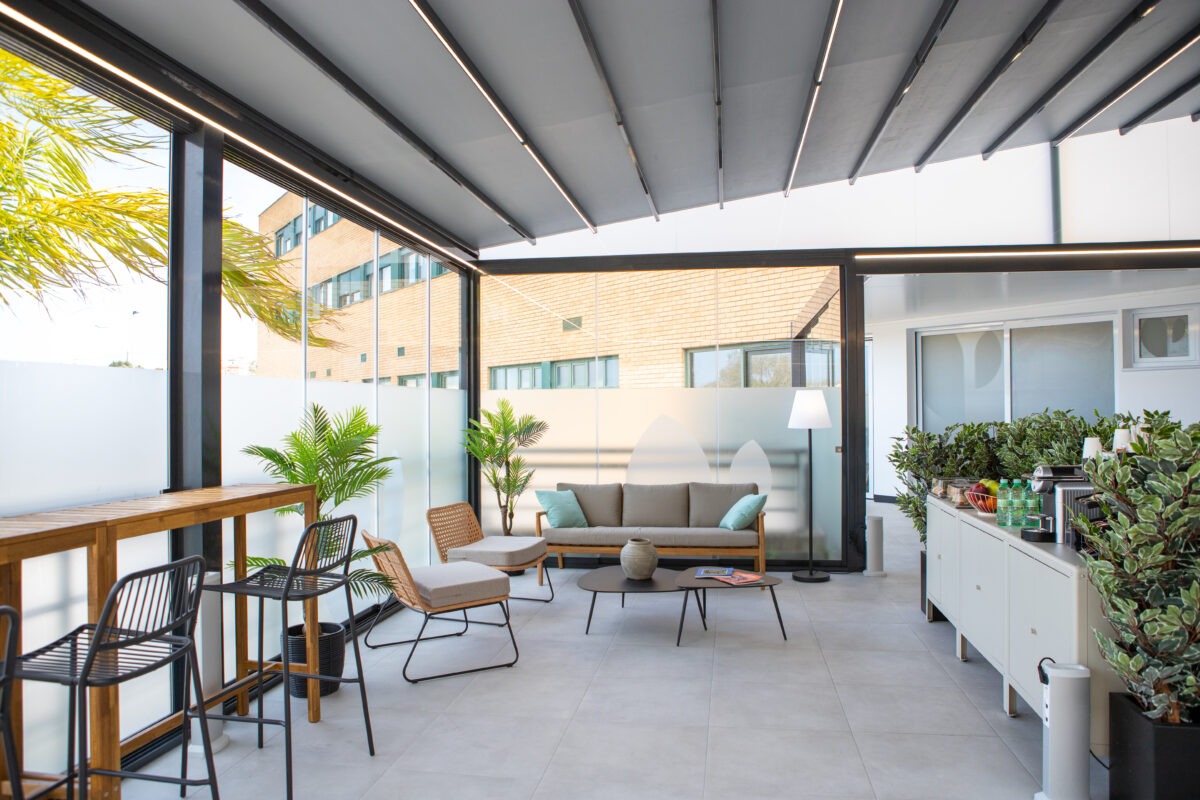 The new Premium Terrace is a large and bright glazed space with all the maximum amenities and comfort to enjoy a quiet environment while patients are in the hospital. This new space, fully air-conditioned to preserve its temperature in winter and summer, has an area for coffee, drinks, and healthy snacks, as well as a rest area designed for relaxation and rest during waits. This space also has a coworking area equipped with Wi-Fi, plugs and furniture for work and enjoyment with electronic devices in comfort.